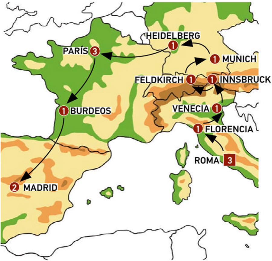 Saldremos de Venecia hacia VERONA, tenemos tiempo para conocer la ciudad de Romeo y Julieta con su importante anfiteatro romano. Posteriormente contorneamos el Lago de Garda, uno de los más hermosos lagos Alpinos. Tiempo en el hermoso pueblo de MALCECINE, desde donde embarcamos en un barquito para llegar, en la otra orilla, a LIMONE, muy pintoresco pueblo entre impresionantes paisajes de montañas que caen sobre el lago. Continuamos a AUSTRIA. INNSBRUCK, llegada a media tarde con tiempo para conocer su bonito centro histórico.