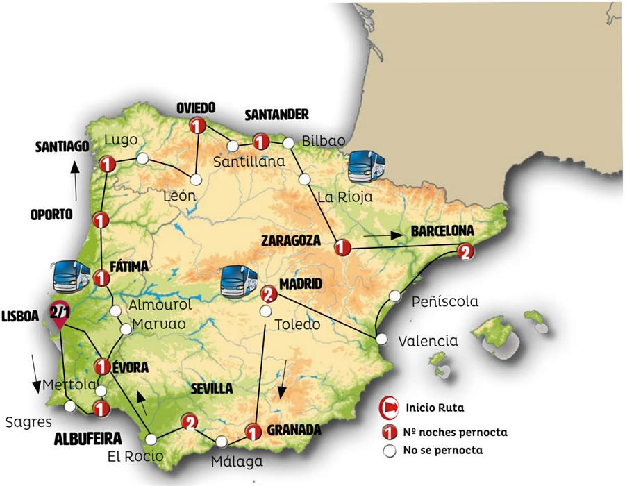 Viajamos hacia el sur siguiendo el Mediterráneo. Una parada en PEÑISCOLA, pequeña ciudad medieval amurallada rodeada por hermosas playas. Tiempo para un paseo. Seguimos a VALENCIA, ciudad portuaria de la costa levantina donde llegaremos a la hora del almuerzo. ¿Probará su paella?. Sobre las 16:30 h salimos y tras realizar una breve parada en la vanguardista Ciudad de las Artes y las Ciencias de Valencia, seguiremos hacia MADRID. Llegada prevista sobre las 20:30 / 21.00hrs. A continuación, y como forma de dar la bienvenida a la ciudad, incluimos un traslado a la Plaza Mayor, lugar siempre concurrido y habitual para salir a tomar unos pinchos o vinos en alguno de sus numerosos mesones.