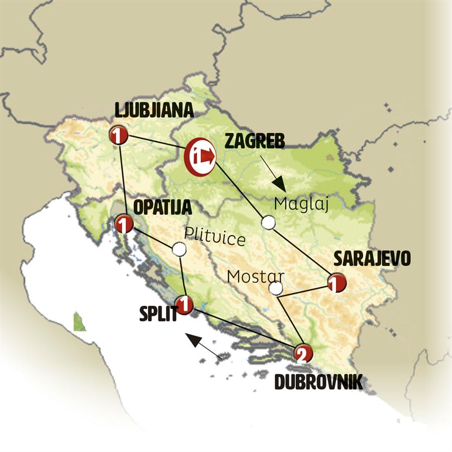Nota: En algunas salidas, el alojamiento podrá ser dado en Cavtat, localidad costera próxima a la ciudad.