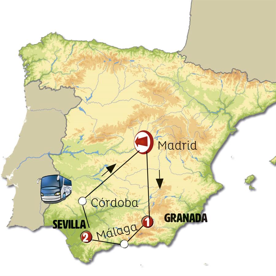 Hoy disfrutaremos de paisajes espectaculares mientras dejamos atrás la cordillera de Sierra Nevada. Seguiremos luego el recorrido por el Mediterráneo, en la llamada Costa Tropical, donde el suave microclima durante todo el año permite el cultivo de especies tropicales como guayabas, mango y aguacate, y en el pasado, caña de azúcar. Paramos en NERJA, un encantador pueblo costero con impresionantes acantilados. Continuamos hacia MÁLAGA, capital de la Costa del Sol, llena de vida y con hermoso centro histórico. Tiempo para almorzar y pasear por el centro. Nos adentramos después por las sierras de Andalucía, llegamos a RONDA, bellísimo pueblo blanco con su gran tajo que corta la ciudad por la mitad. Continuación a SEVILLA. Llegada al final de la tarde. Cena incluida en el hotel.