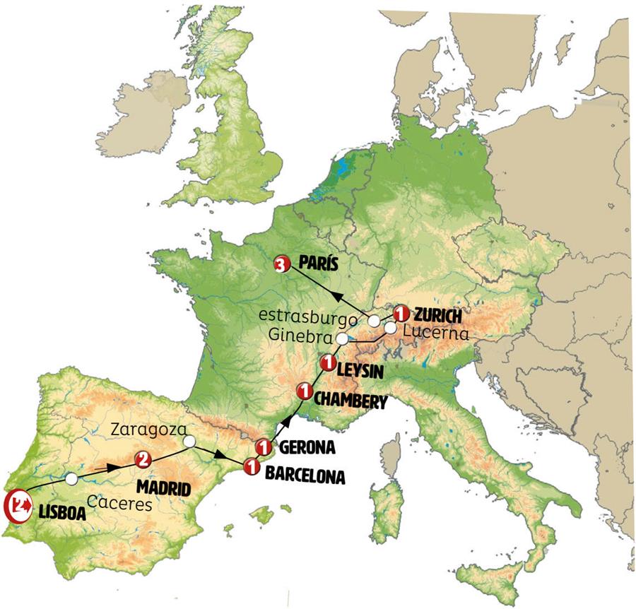 Nota: en algunas ocasiones, el alojamiento se dará en alguna otra población Suiza en el corazón de los Alpes (normalmente Matigny).