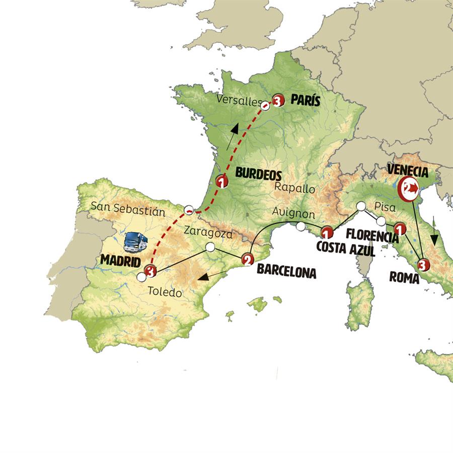 Tras el desayuno realizaremos una breve visita en autocar de la ciudad de Niza, capital de la Costa Azul donde pasaremos por el emblemático Paseo de los Ingleses conocido por sus bellos paisajes costeros, la plaza Massena, corazón de la ciudad y su bello puerto antiguo. (en ocasiones, el paseo por Niza podrá darse el día anterior a la llegada a Niza). Saldremos para ARLES, ciudad en el corazón de la Provenza que inspiró a Van Gogh en tantas pinturas. Sus impactantes restos romanos nos atestiguan la importancia de esta ciudad en aquella época. Tiempo para dar un paseo y almorzar. Por la tarde seguimos nuestra ruta hacia Cataluña siguiendo la Provenza. BARCELONA, llegada al final del día.