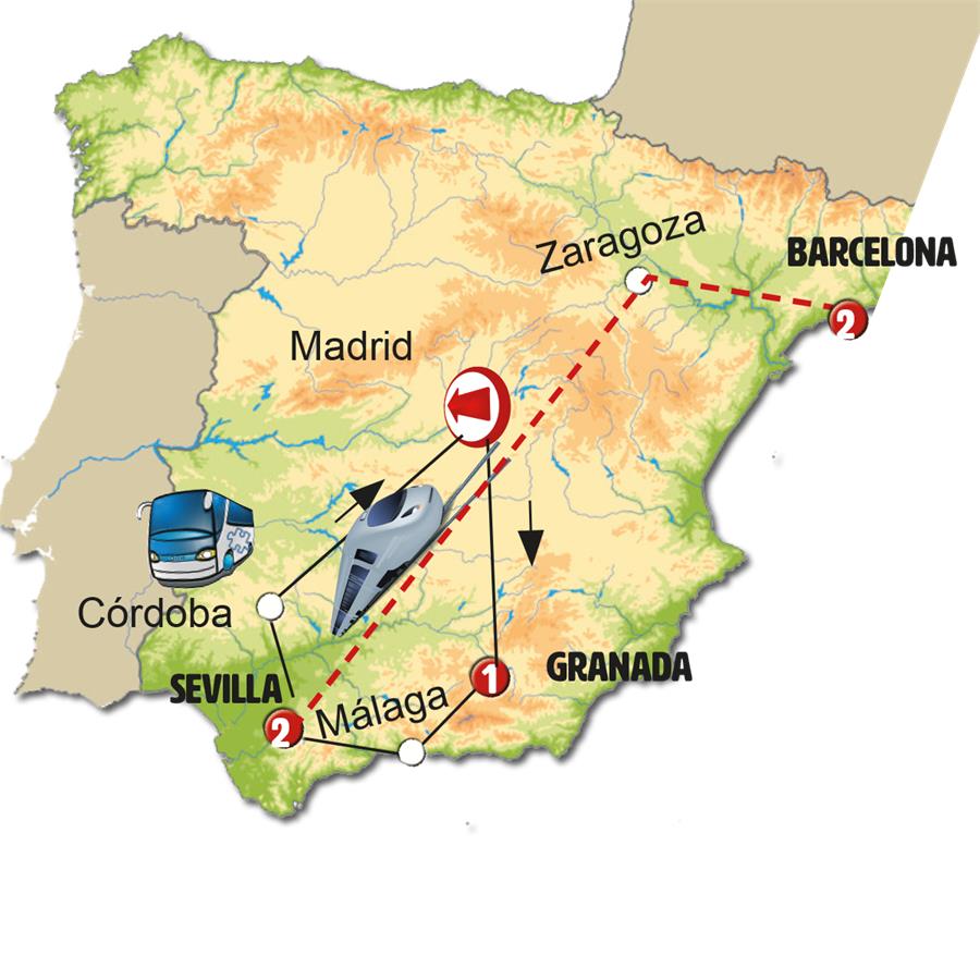 Salida de Madrid al comienzo de la mañana. Viajamos hacia el sur atravesando La Mancha, con parada en PUERTO LÁPICE, un pueblo manchego que evoca a Don Quijote. Entraremos por Despeñaperros en Andalucía. GRANADA, llegada. Almuerzo incluido. Por la tarde, si usted adquirió el viaje con visita a la Alhambra incluida, visitaremos con guía local el inmenso Palacio de la Alhambra y sus bellos jardines del Generalife, construidos en época árabe.NOTA MUY