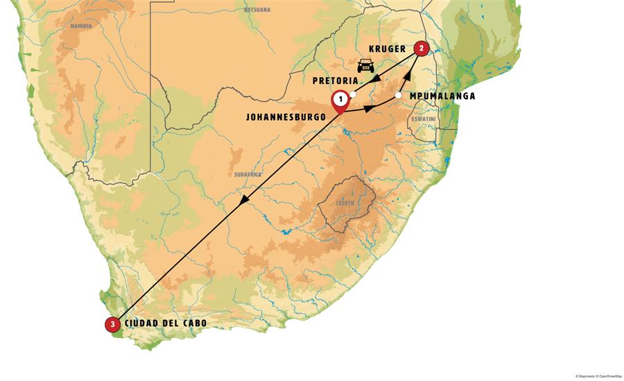 Nota: Los safaris se realizan en vehiculo abierto 4x4 con guia de habla Española. En el caso de ser más de 9 personas, el guia se irá turnando entre los distintos vehiculos y es posible que en ocasiones las explicaciones sean en inglés.Es costumbre dar propina al chofer y al guia. Niños menores de 8 años no pueden ir en el tour del parque Kruger.