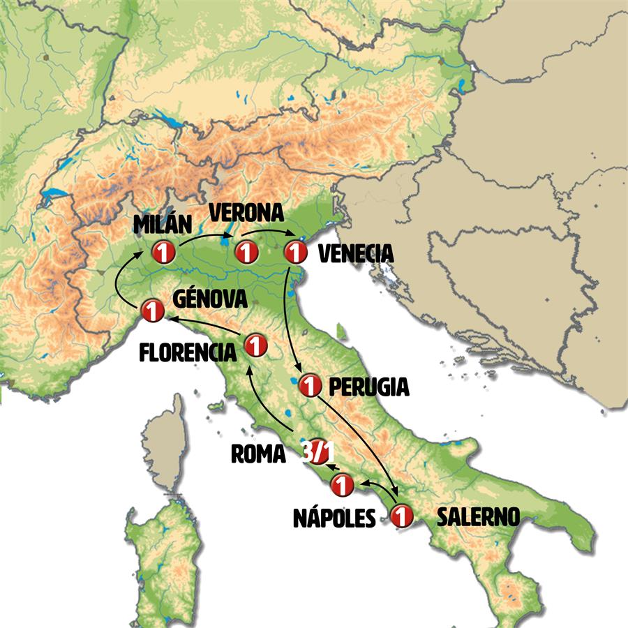 Visita panorámica de la bella histórica ciudad de Perugia, conocida también por ser la ciudad del chocolate. Subiremos por las rampas móviles que atraviesan el peñón rocoso y nos sorprenderemos visitando su ciudad subterránea. Tras ello viajamos a ASÍS donde disponemos de tiempo para almorzar y conocer la Basílica de SAN FRANCISCO. Por la tarde viajamos al sur de Italia (en ocasiones paso por Roma para dejar viajeros). NÁPOLES, llegada al final de la tarde.