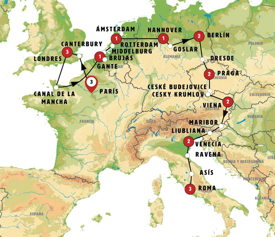 Nota: en ocasiones, la visita de Praga se realizará el domingo.