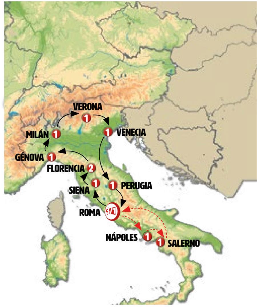 Visita panorámica de la bella histórica ciudad de Perugia, conocida también por ser la ciudad del chocolate. Subiremos por las rampas móviles que atraviesan el peñón rocoso y nos sorprenderemos visitando su ciudad subterránea. Tras ello viajamos a ASÍS donde disponemos de tiempo para almorzar y conocer la Basílica de SAN FRANCISCO. Por la tarde viajamos al sur de Italia (en ocasiones paso por Roma para dejar viajeros). NÁPOLES, llegada al final de la tarde.