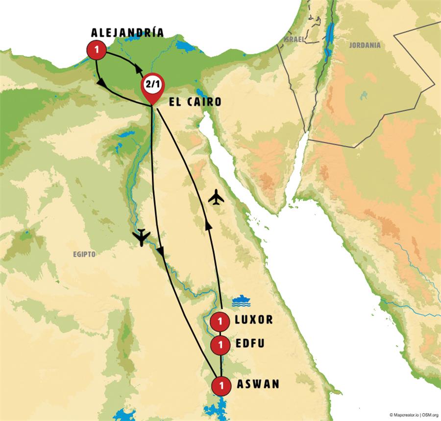 Nota: Dependiendo de la hora de llegada y de la luz del día, la visita de Luxor y Karnak puede realizarse a la mañana siguiente.