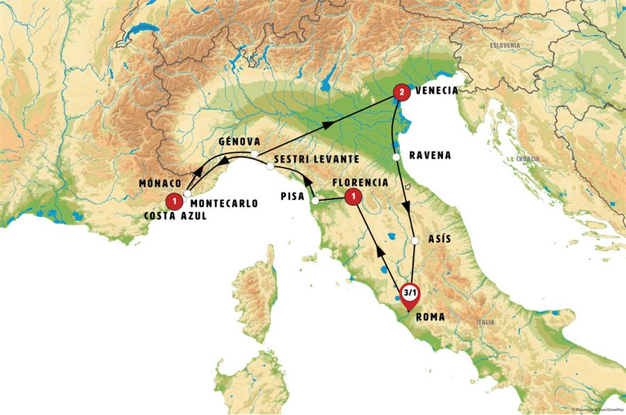 Salida de FLORENCIA hacia PISA, tiempo para admirar su conjunto artístico donde se encuentra la famosa Torre Inclinada. La etapa que seguimos a continuación es de extraordinaria belleza paisajista siguiendo la Riviera Italiana. Llegada a SESTRI LEVANTE encantadora pequeña ciudad turística junto al mar. Tiempo para almorzar y pasear. Continuación hacia la Costa Azul francesa.