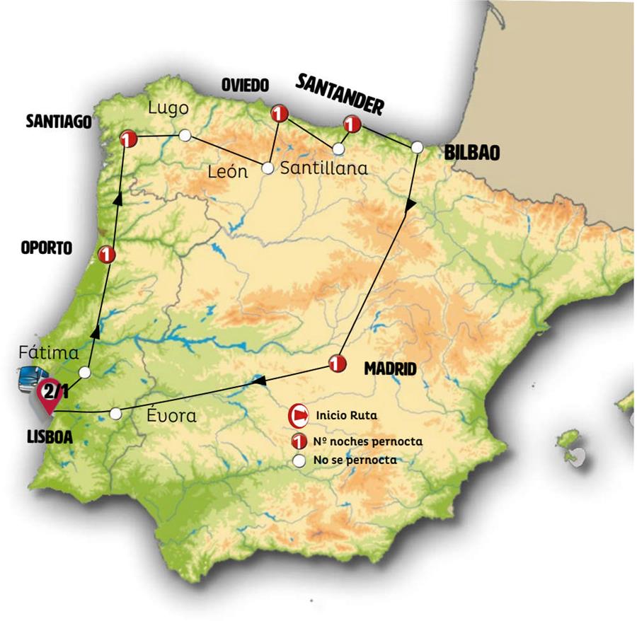 Nota: Según número de pasajeros, el trayecto Bilbao/ Madrid podrá efectuarse en autocar de línea regular o en tren.