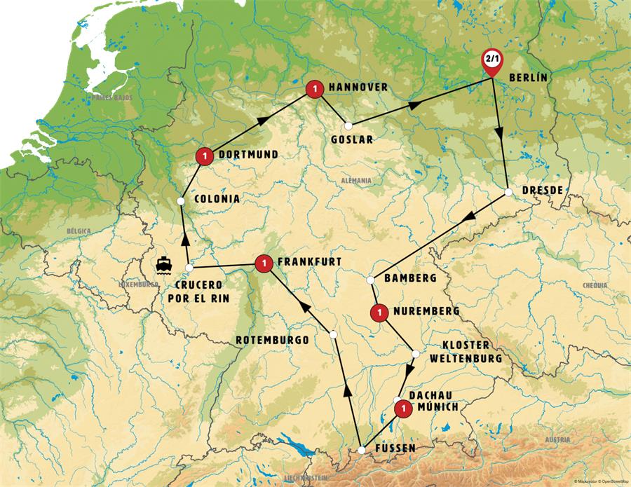Viajamos a DRESDE, la capital de Sajonia, conocida por su arquitectura barroca y renacentista, sus palacios y los bonitos paseos junto al río Elba. Seguimos hacia Baviera. Llegada a BAMBERG hermosísima ciudad llena de vida; no deje de pasear por la pequeña Venecia. Continuamos a NUREMBERG, la segunda ciudad de Baviera, ciudad de larga historia donde sugerimos visitar el punto donde se encontraba el Coliseo de Hitler.
