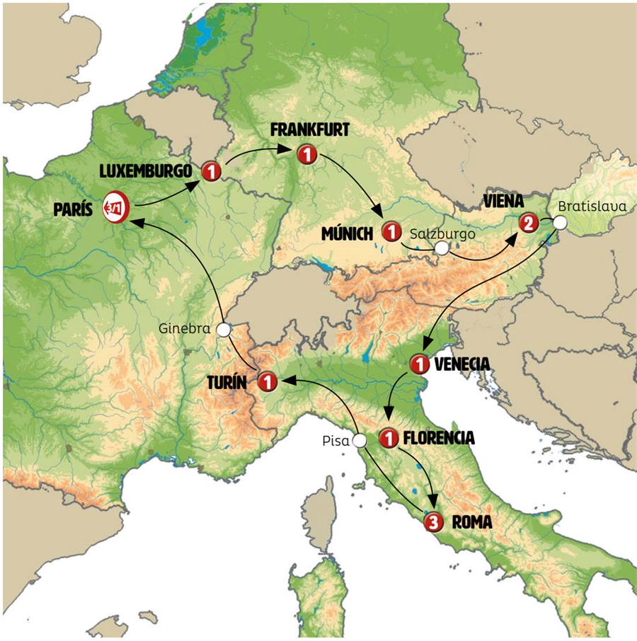Viajamos hacia la región productora del Champagne. Entre bonitos pueblos y viñedos llegamos a EPERNAY donde visitamos una bodega de Champagne. Tras ello, seguimos ruta hacia Bélgica. Parada en BOUILLON, pintoresca ciudad de Bélgica donde destaca el inmenso Castillo de Godofredo de Bouillon. Continuación hacia LUXEMBURGO. Tiempo libre en esta capital Europea protegida por barrancos Patrimonio de la Humanidad desde 1994. Alojamiento.