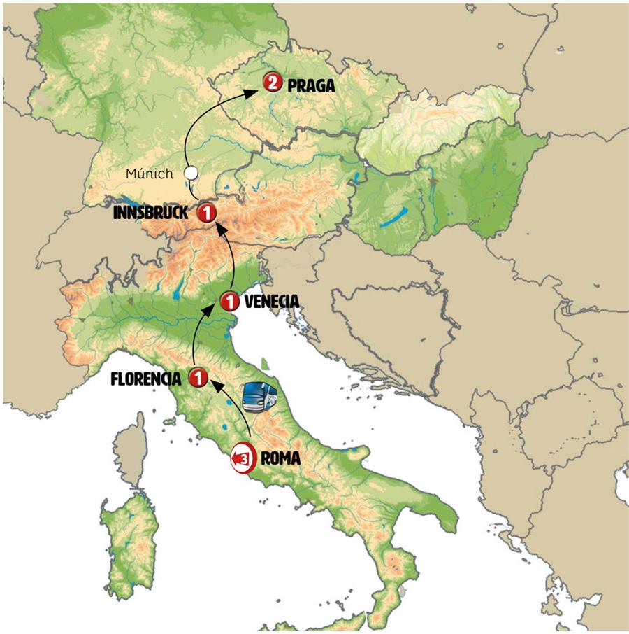 Saldremos de Venecia hacia VERONA, tenemos tiempo para conocer la ciudad de Romeo y Julieta con su importante anfiteatro romano. Posteriormente contorneamos el Lago de Garda, uno de los más hermosos lagos Alpinos. Tiempo en el hermoso pueblo de MALCECINE, desde donde embarcamos en un barquito para llegar, en la otra orilla, a LIMONE, muy pintoresco pueblo entre impresionantes paisajes de montañas que caen sobre el lago. Continuamos a AUSTRIA. INNSBRUCK, llegada a media tarde con tiempo para conocer su bonito centro histórico.