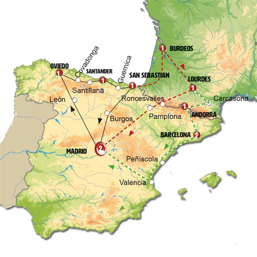 Viajamos hacia los Picos de Europa. Entre hermosos paisajes conocemos la Basílica de Covadonga. Continuamos ruta siguiendo el mar hacia SANTILLANA, uno de los pueblos más bonitos de España con su intacto casco medieval. En sus proximidades conocemos el Museo de LAS CUEVAS DE ALTAMIRA, (entrada incluida). Posteriormente viajamos a SANTANDER, la capital regional, ciudad marítima con impresionantes vistas entre montañas y playas. Incluimos una visita panorámica con guía local en la que podremos descubrir esta elegante ciudad costera y su hermosa bahía.