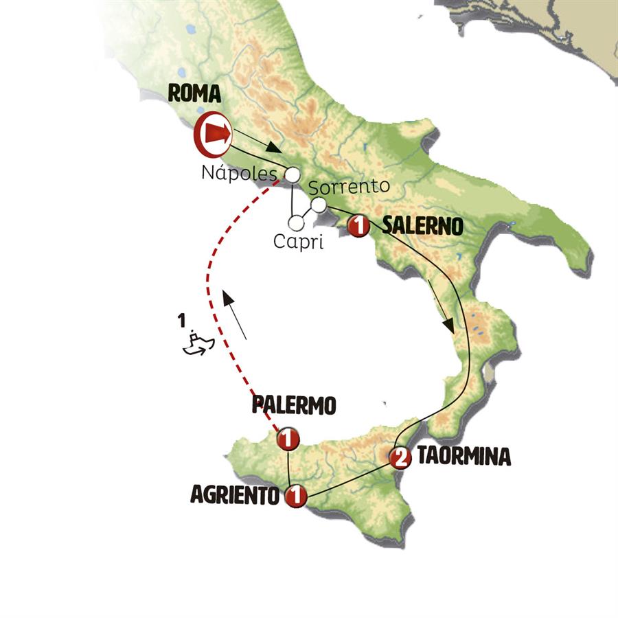 Salida temprano de Roma, viajamos hacia el sur de Italia. Paso por NÁPOLES en donde embarcamos (billete de barco incluido) a la ISLA DE CAPRI, si lo desean podrán tomar la lancha a la Gruta Blanca o el funicular a Capri capital. Tras la hora del almuerzo embarcamos nuevamente en dirección a SORRENTO, población llena de encanto y vida turística al pie del acantilado. Tiempo para pasear. Continuamos al golfo de Salerno. Alojamiento en SALERNO.