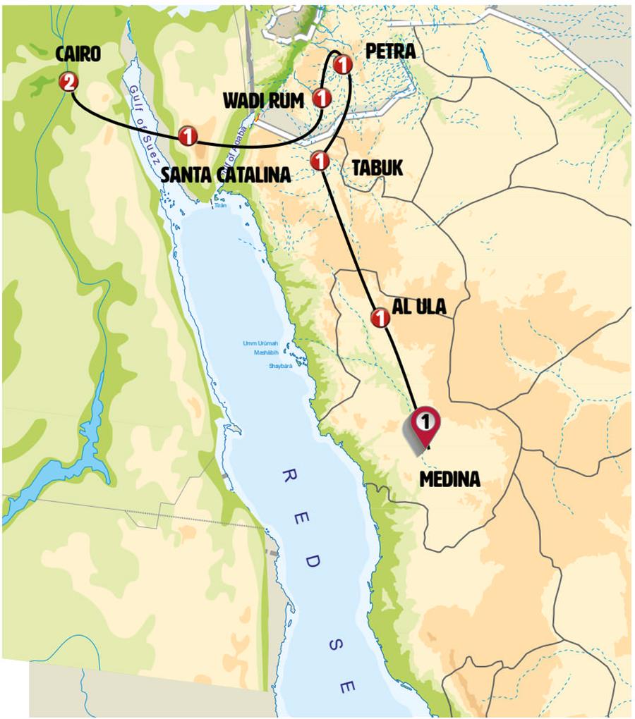 NOTA IMPORTANTE: Debido a circunstancias excepcionales o a un número reducido de participantes, puede ocurrir que crucemos directamente de Jordania a Egipto en barco, tomando el FERRY AQABA- TABA con una duración de algo más de dos horas. Durante la travesía en ferry, no habrá asistencia de ningún guía.