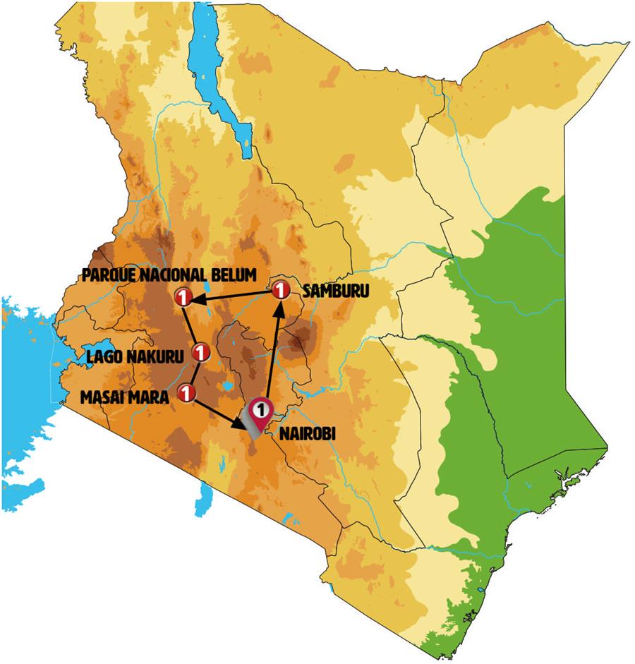 Desayuno. Salida hacia Nairobi. Llegada al mediodía y Traslado al aeropuerto. Fin de viaje