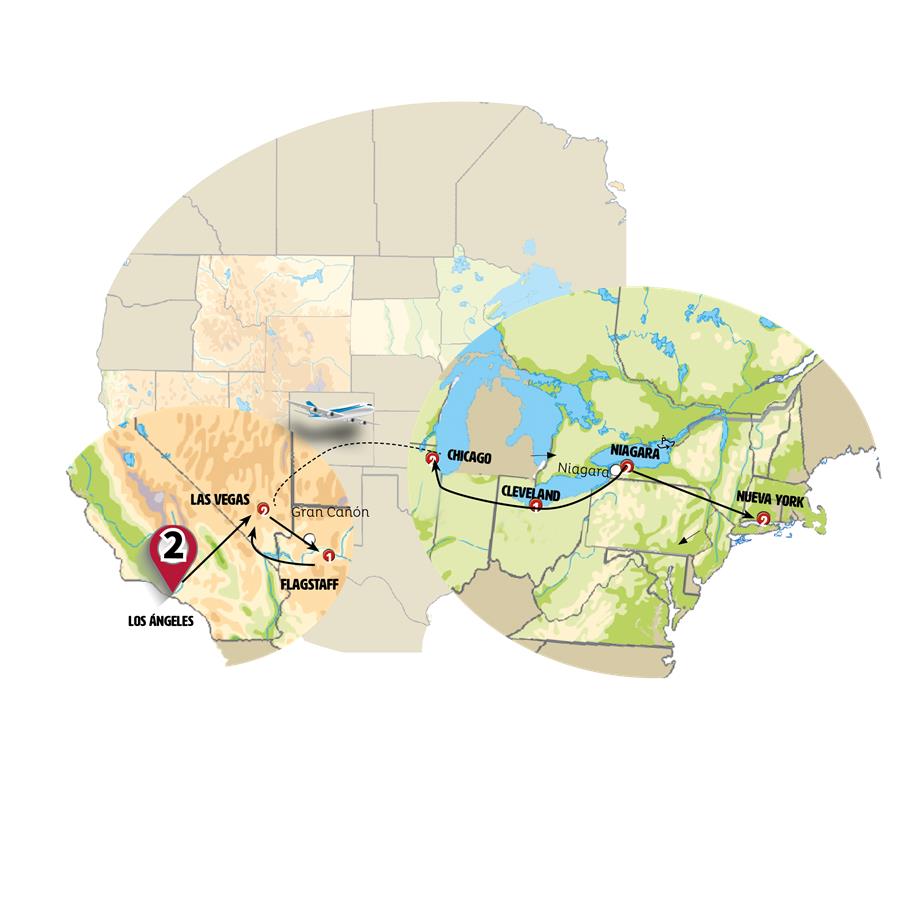Salimos de Los Angeles y nos dirigimos a Las Vegas, Nevada. Llegada y en la tarde incluimos un paseo por el Downtown y el famoso Strip, la avenida donde se levantan los hoteles, casinos y espectáculos que han convertido a esta ciudad en un auténtico parque temático para adultos. Por la noche ofreceremos opcionalmente Noche de Luces en Las Vegas.