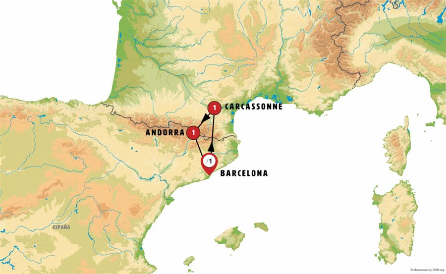 The morning in Carcassonne. With our guide we will go to its impressive county castle (entrance included) and its medieval walls. Later you will have free time for a walk. After that we continue towards the Pyrenees mountain range. FOIX, a brief stop to stroll through the medieval city dominated by its impressive castle of the Counts of Foix. We continue towards the high mountains of the Pyrenees, with snowy peaks all year round. We enter ANDORRA, a small country whose official language is Catalan. On our route we make a short stop next to SANT JOAN DE CASELLES, a small Romanesque church from the 12th century. We continue to ANDORRA LA VELLA, capital of the principality of Andorra, free time to get to know the city with a lot of commercial life, oryou can go to “Caldea”, the largest thermal spa in Europe. Dinner included.