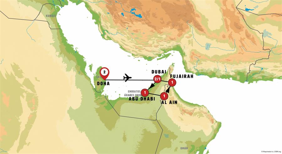 Note: The flight from Doha may be to Dubai or to a nearby airport (Sharjah or Abu Dhabi).