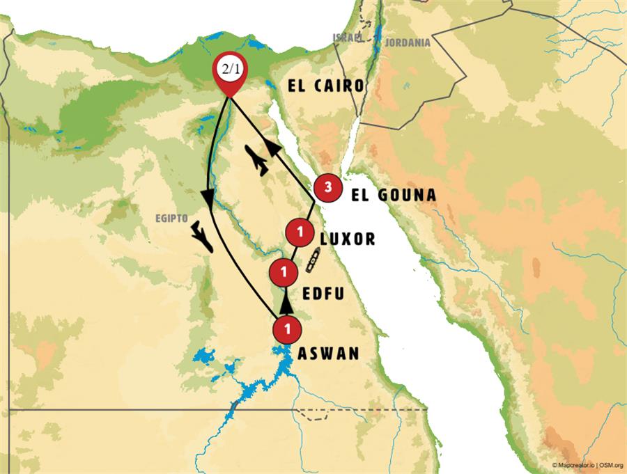 Nota: Dependiendo de la hora de llegada y de la luz del día, la visita de Luxor y Karnak puede realizarse a la mañana siguiente.
