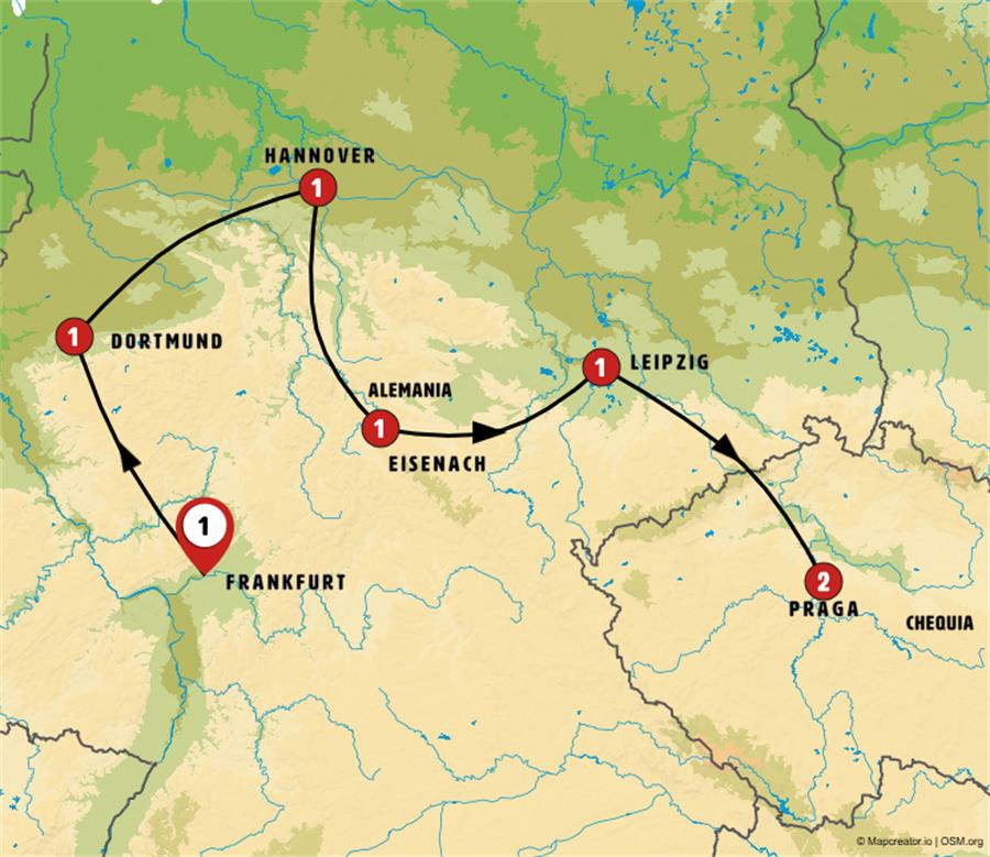 Saliendo de Leipzig, haremos una parada junto al Monumento a la Batalla de las Naciones, inaugurado en 1913 y con una altura de 91 metros, que conmemora una célebre batalla de las guerras napoleónicas. Continuamos hacia DRESDE, la capital de Sajonia, conocida por su arquitectura barroca y renacentista, sus palacios y los bonitos paseos junto al río Elba. Tiempo para almorzar y pasear. Posteriormente pasamos a la República Checa. PRAGA, llegada a media tarde, incluimos visita panorámica de esta ciudad, una de las más hermosas de Europa, destaca el Castillo, la Plaza del Ayuntamiento y el hermoso Puente de Carlos. Al final del día dispondrá de tiempo libre en el centro donde se encuentran numerosas cervecerías tradicionales