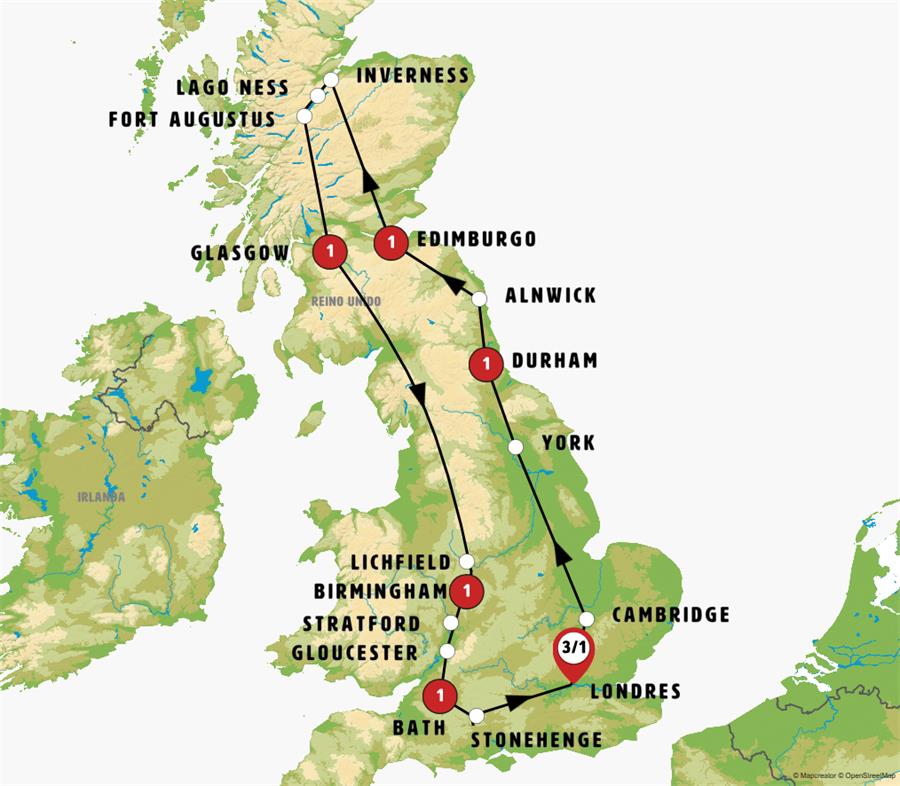 NOTA MUY IMPORTANTE: Los grupos llegando a Edimburgo desde el 15 de noviembre hasta final del mes de febrero, debido a la corta duración de los días y problemas frecuentes de nieve en las carreteras, se realizará la etapa siguiente: