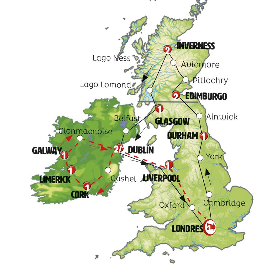 Salimos de Londres hacia el norte de Inglaterra. En CAMBRIDGE disponemos de tiempo para admirar sus hermosos colegios mayores. Seguimos a YORK, su catedral, su ambiente, sus murallas de origen romano, sus activas calles comerciales le dejaran un muy grato recuerdo. Tiempo para pasear. Tras ello seguimos hacia el norte. DURHAM. Llegada a esta hermosa pequeña ciudad medieval llena de vida con su catedral frente al castillo.