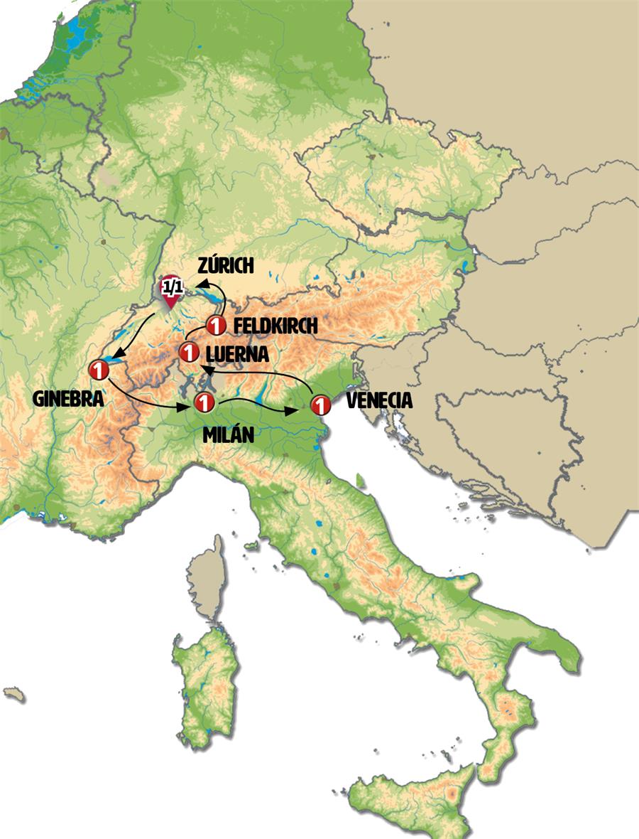 Salimos siguiendo el valle del Po hacia SUIZA. Etapa de gran belleza paisajística entrando en la región de los lagos Alpinos. LUGANO, tiempo para almorzar y pasear por la capital de la región Suiza de habla Italiana, a la orilla del gran lago. Tras la hora del almuerzo cruzamos los Alpes por el túnel de San Gotardo. LUCERNA, llegada a media tarde. Tiempo para conocer esta hermosísima ciudad Suiza a la orilla del lago de los cuatro cantones.