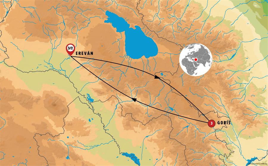 Desayuno en el hotel. City tour en Goris. Una ciudad pequeña ubicada en la región de Syunik, con arquitectura muy especial. Excursión a Khndzoresk, un pueblo donde la gente vivía en cuevas. Tomaremos el Teleférico más largo del mundo.Salida hacia el magnífico monasterio Tatev, perla arquitectónica medieval,centro religioso y educativo muy importante. Regreso a Goris.Alojamiento en el hotel en Goris.