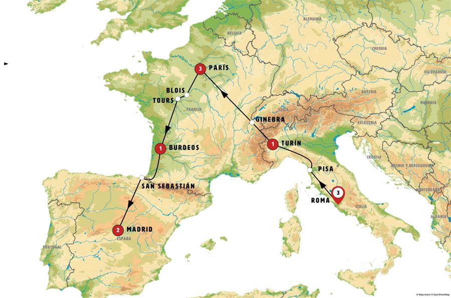 Salida de Burdeos. Paso al País Vasco. SAN SEBASTIÁN, tiempo para pasear y almorzar en esta atractiva ciudad junto al mar. Continuación hacia MADRID, donde a la llegada realizamos una breve visita nocturna de Madrid, seguida de un paseo a la plaza Mayor, Podremos aprovechar para tomar unos vinos en algún mesón.